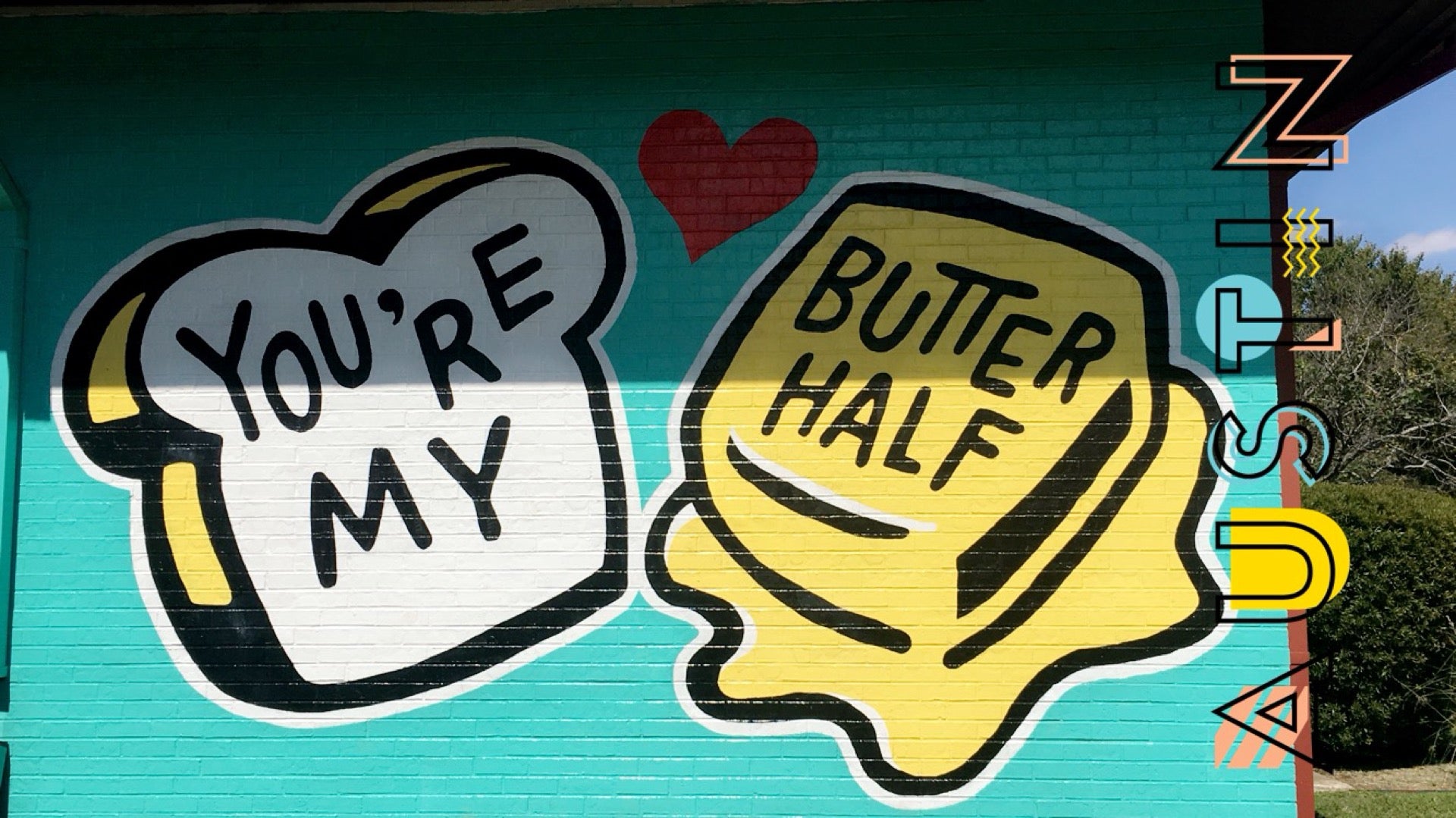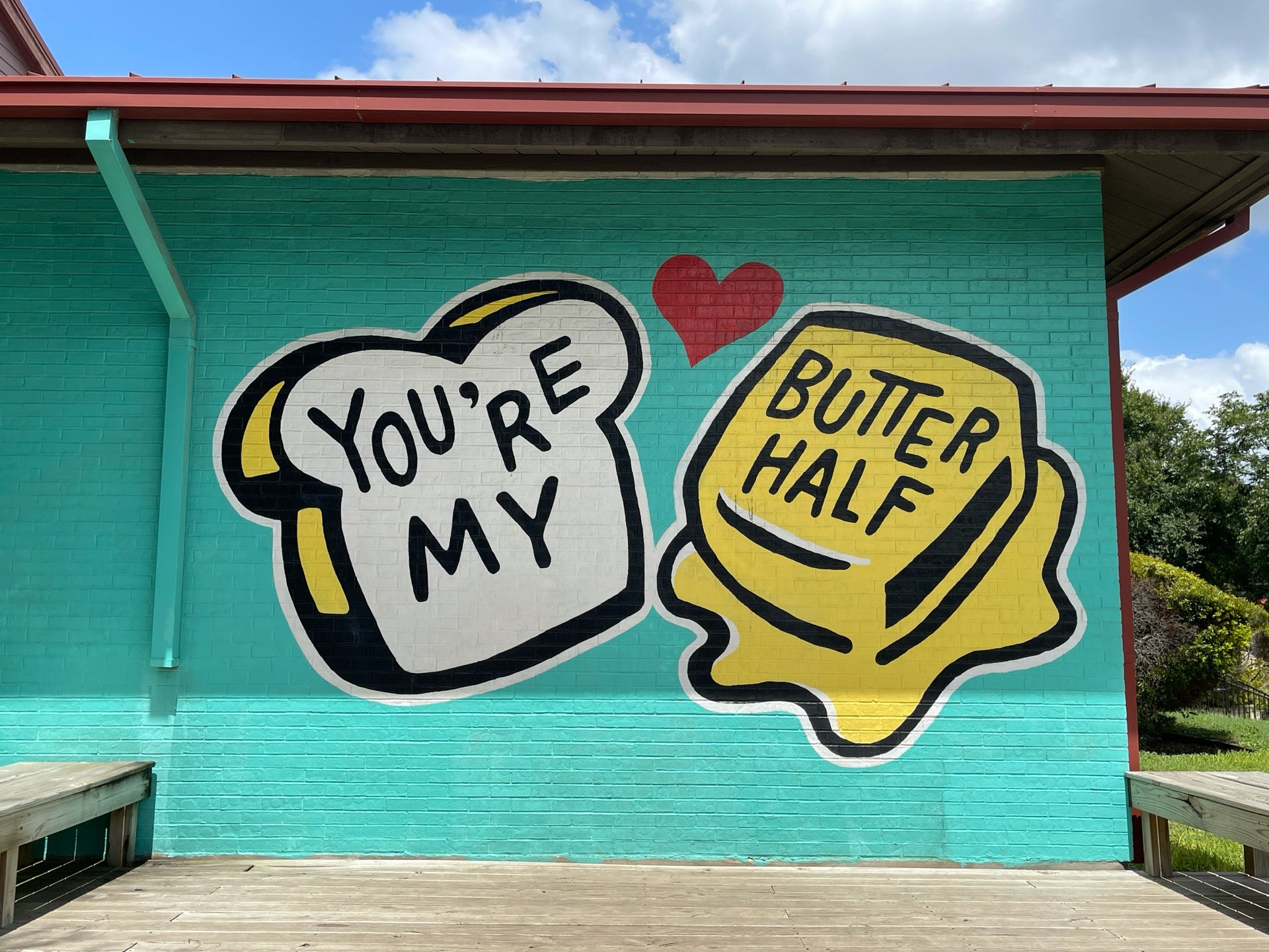 In a vibrant corner of Austin, the You’re My Butter Half Mural captures both affection and creativity on its expansive canvas. This public art installation invites passersby to pause and soak in its charm, showcasing a playful yet poignant expression of love and connection that resonates with locals and visitors alike.